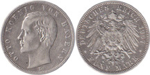 |  Баварія. 1891-1913. Отто 5 марок Ø38,0 мм. Ag-900, 27,778 г. Стан збереження: VF