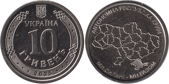 10 гривень Ø23,5 мм. Fe/Ni, 6,35 г.