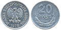 |  1957-1985 20 грошей Ø20,0 мм. Al, 1,00 г. Стан збереження: VF/XF В наявності: 1965, 1967, 1973, 1976, 1979