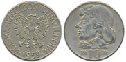 |  1959-1960. Тадеуш Костюшко 10 злотых Ø31,0 мм. Cu-Ni, 12,90 г. Стан збереження: VFНемає в наявності