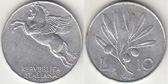 |  1946-1950. Республіка 10 лір Ø29,0 мм. Al, 2,9 г. Стан збереження: VF