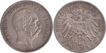 |  Саксонія. 1903-1904. Георг 2 марки Ø28,0 мм. Ag-900, 11,11 г. Стан збереження: Uncirculated