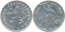 |  1948. 3 роки Празського повстання Ювілейна Ag: 50 крон Ø28,0 мм. Ag-500, 10,0 г. Стан збереження: UncirculatedНемає в наявності