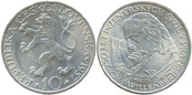 |  1957. Ян Коменський Ювілейна Ag: 10 крон Ø30,0 мм. Ag-500, 12,0 г. Стан збереження: XF -