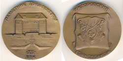 |  1986. ІХ Спартакіада Ø50,4 мм. Bronze, 75,0 г. Стан збереження: XF