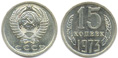 СРСР 15 копеек 1974, Ø19,6 мм. Cu-Ni, 2,70 г. Сохранность: XF +Стартовая цена: 800 грн.