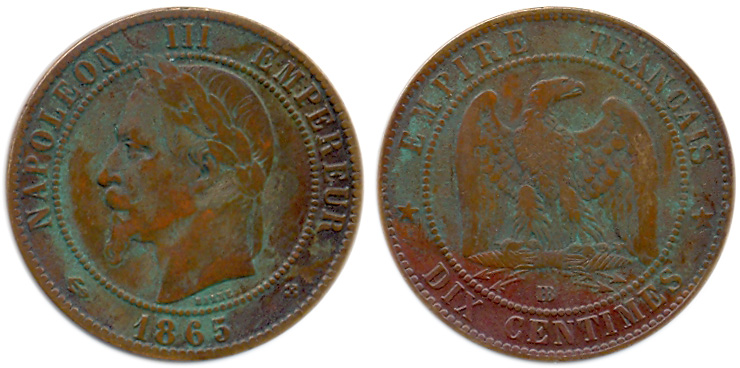 10 сантим Ø30,0 мм. Bronze, 10,0 г.