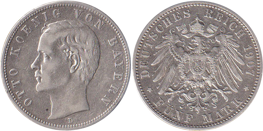 5 марок Ø38,0 мм. Ag-900, 27,778 г.