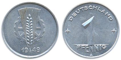 1 пфенниг Ø17,0 мм. Al, 0,75 г.